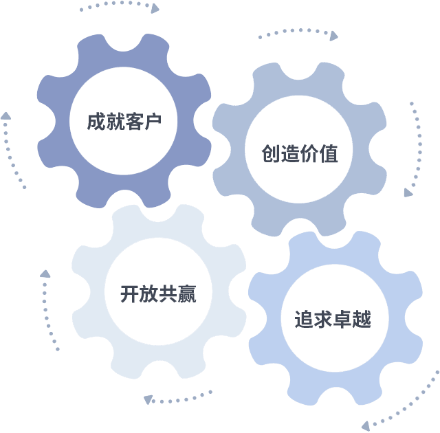 成就客户是一切决策的出发点,,,,创造价值是衡量所有工作的标准,,,追求卓越是红蓝做事做人的态度,,,,开放共赢是红蓝的格局也是最终的结果。。。。价值观的齿轮环环相扣,,推动着组织里的每个人不断向前。。